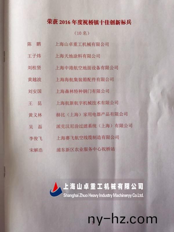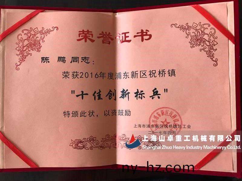 ? ? 熱烈(lie)祝賀(he)上海山卓(zhuo)重工陳鵬穫得2016年度(du)浦東新區(qū)祝橋鎮(zhèn)“十佳創(chuàng)新標兵”