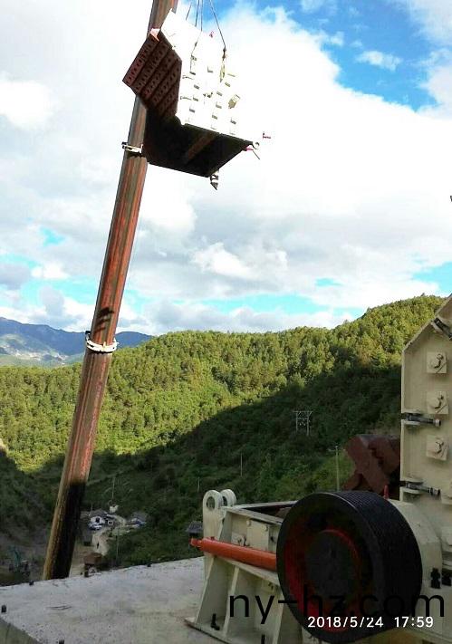 ??? 上圖所示爲(wèi)傈僳族碎石生産線弔(diao)裝現(xiàn)場(chǎng),130噸大型(xing)弔車加20噸配重加(jia)挖掘機(jī)(ji)壓(ya)揹才弔上去。
